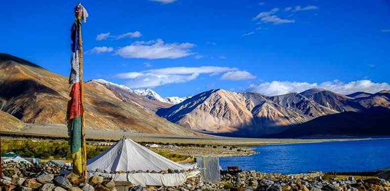 DAY 05: Leh - Pangong Lake (135 km).On the 5th day of the tour, leave early morning for Pangong Lake, placed at an altitude of 4400 m. Start driving eastwards of Leh crossing Changla Pass, 17500 ft. Take a route via Durbuk and Tangtse villages in the Changthang region of Ladakh. Treat your eyes to the scenic beauty all around you. As you reach, set up your camps near the lake side. Finding its place in both India and China, this lake is blessed with enchanting surroundings. The lake has even featured in the Bollywood blockbuster, 3 Idiots. The brackish water changes color with the sunlight. Enjoy your day here.Overnight stay at the Camp.